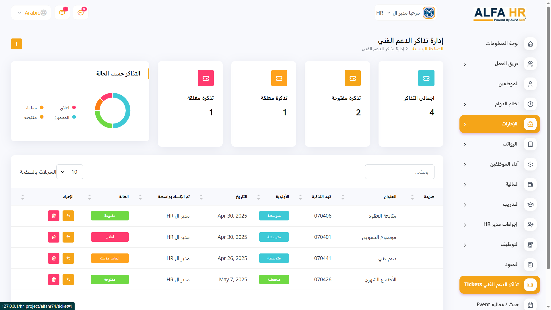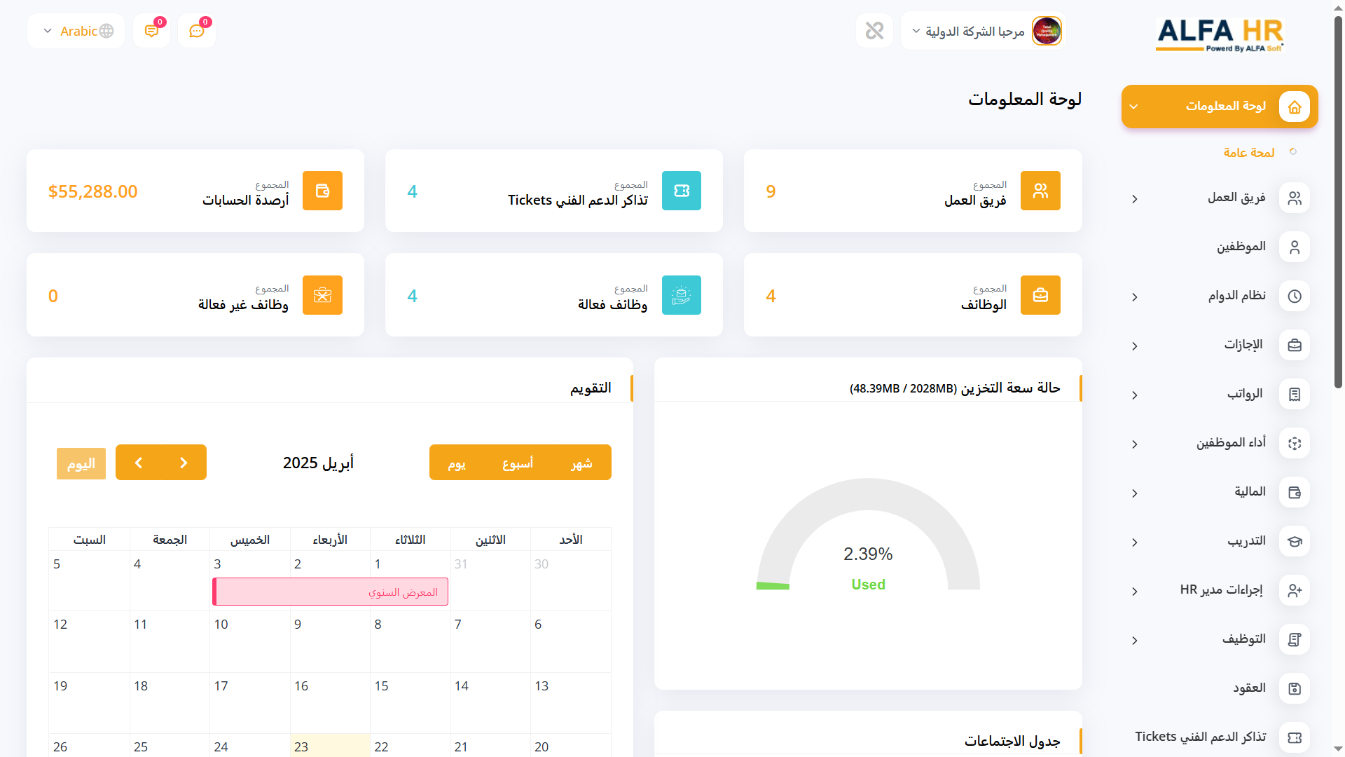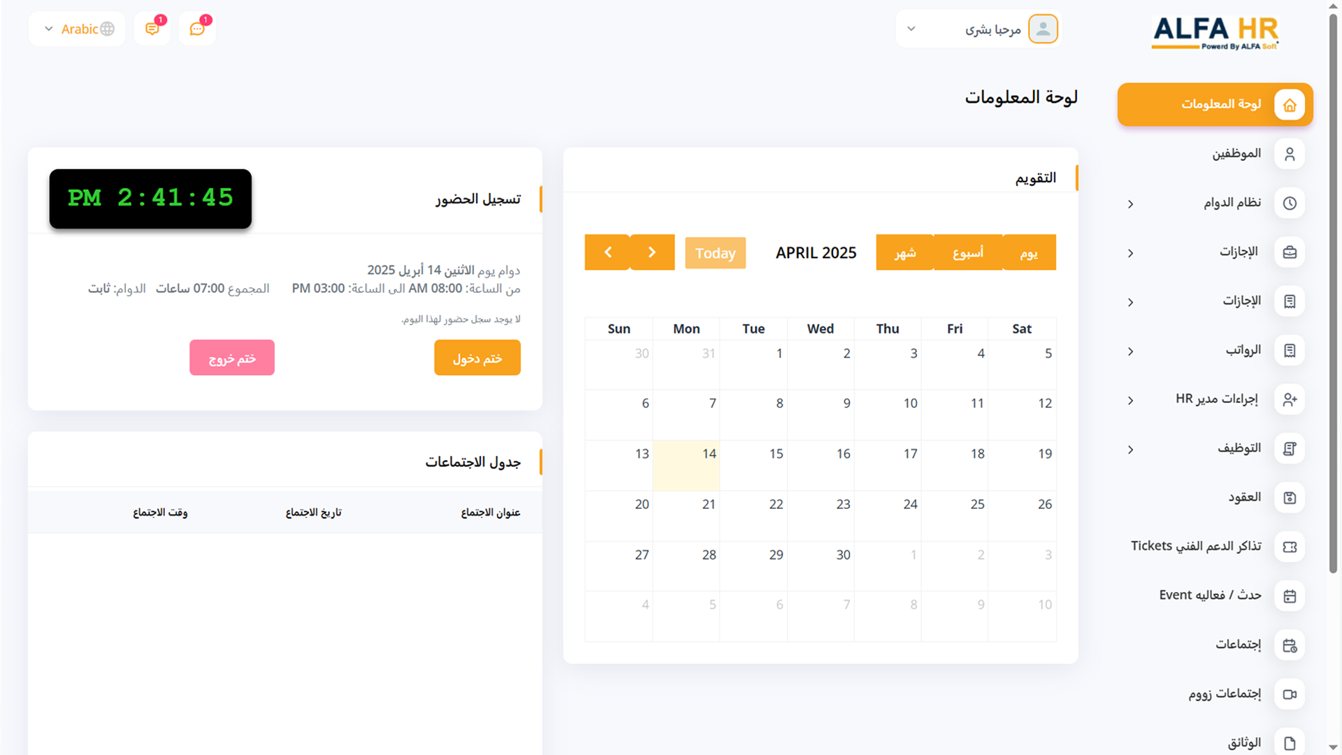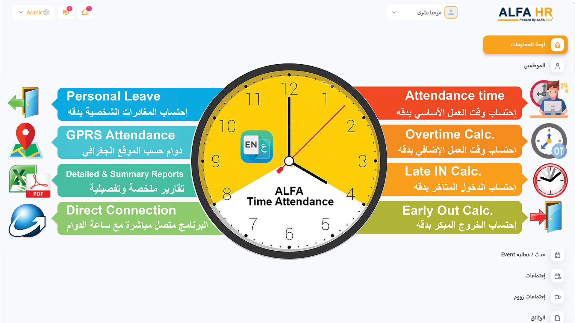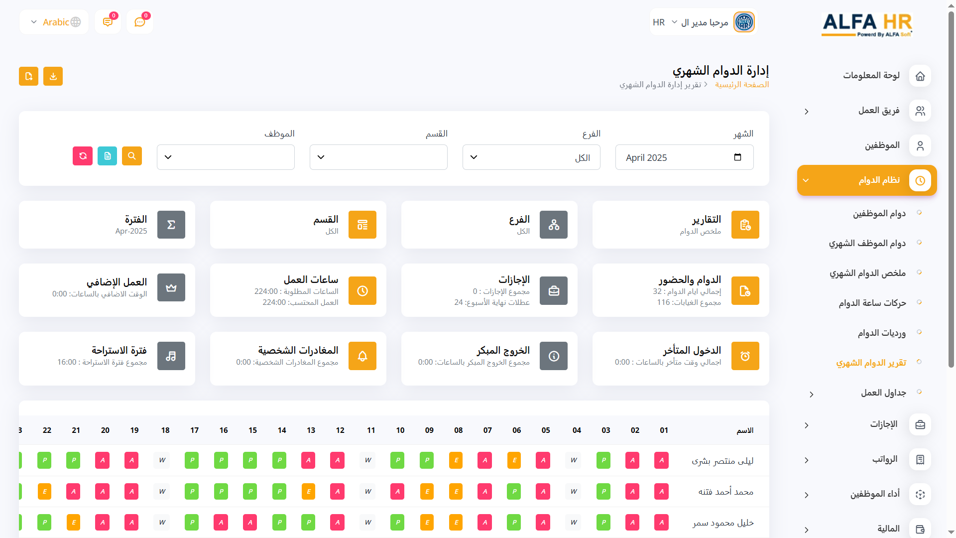 يوفر نظام ALFA HR لوحة تحكم سهلة الاستخدام تمنحك نظرة فورية على الجوانب الرئيسية في عملك.