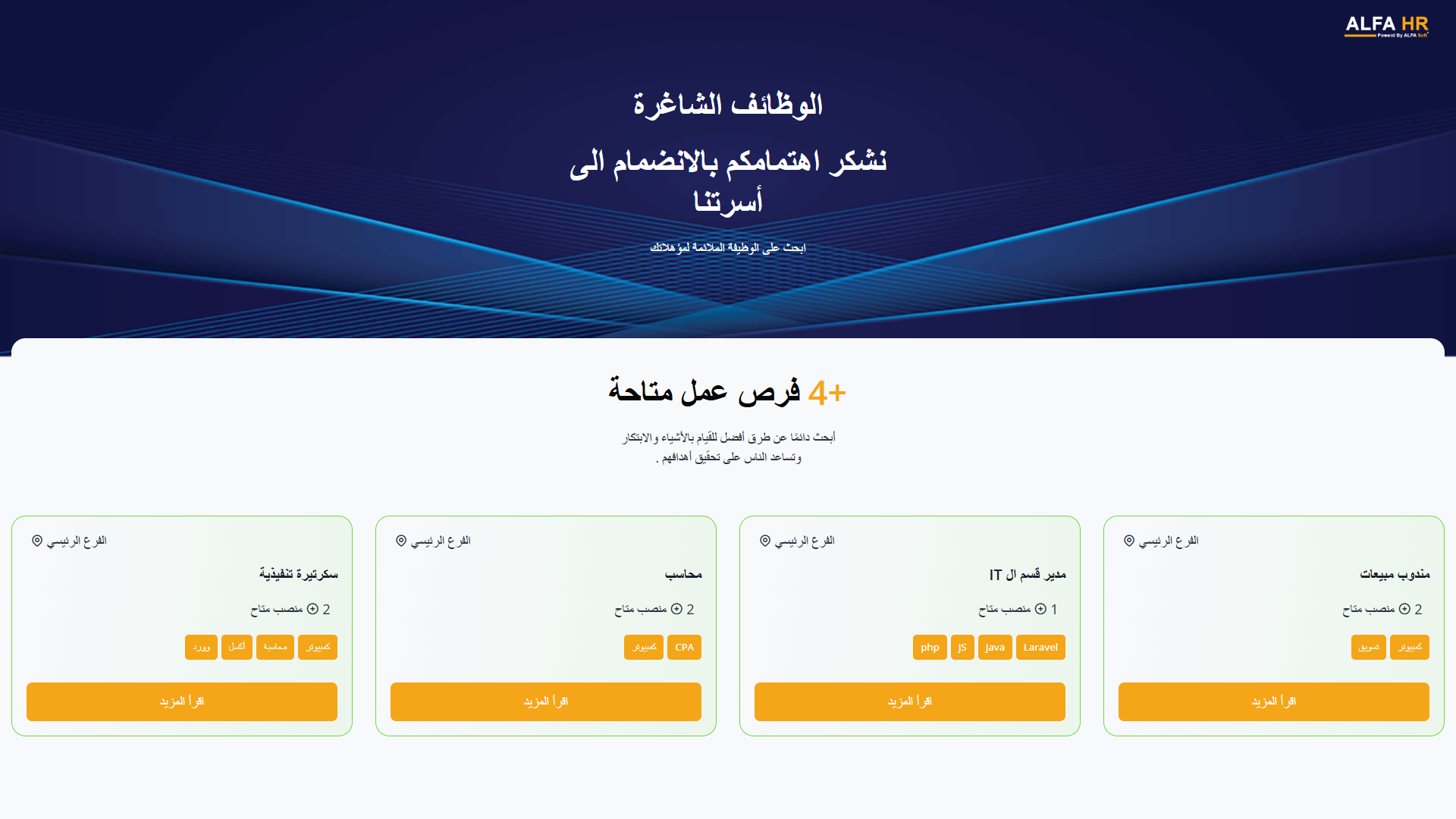 يبسّط ALFA HR عملية التوظيف من خلال نشر الوظائف، جدولة المقابلات، وإنشاء أسئلة مخصصة للمقابلات.